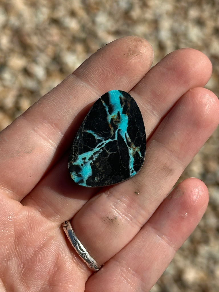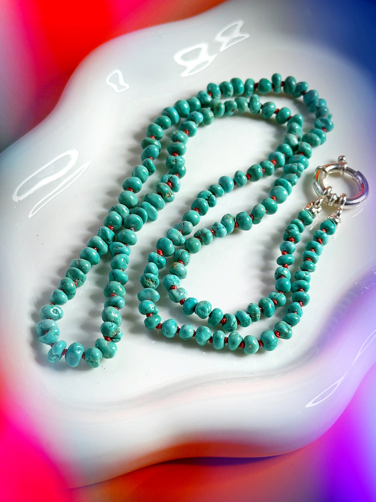 RARE Lone Mountain Turquoise Graduated Silk Knotted Nugget Bead Necklace - 25 INCHES