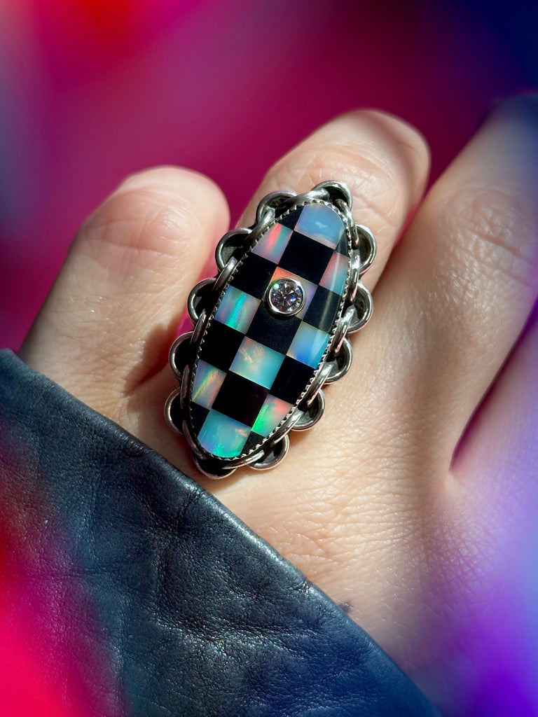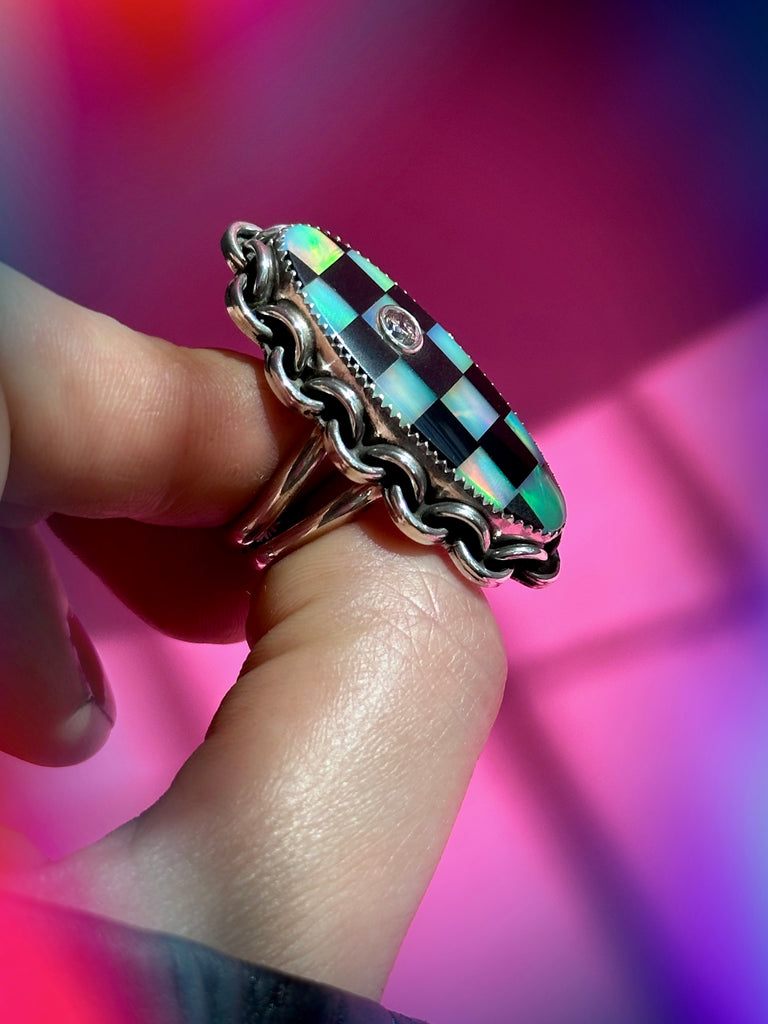 Blinged Out 💎 Checkmate 🏁⛓️ Love Link Ring - SIZE 7