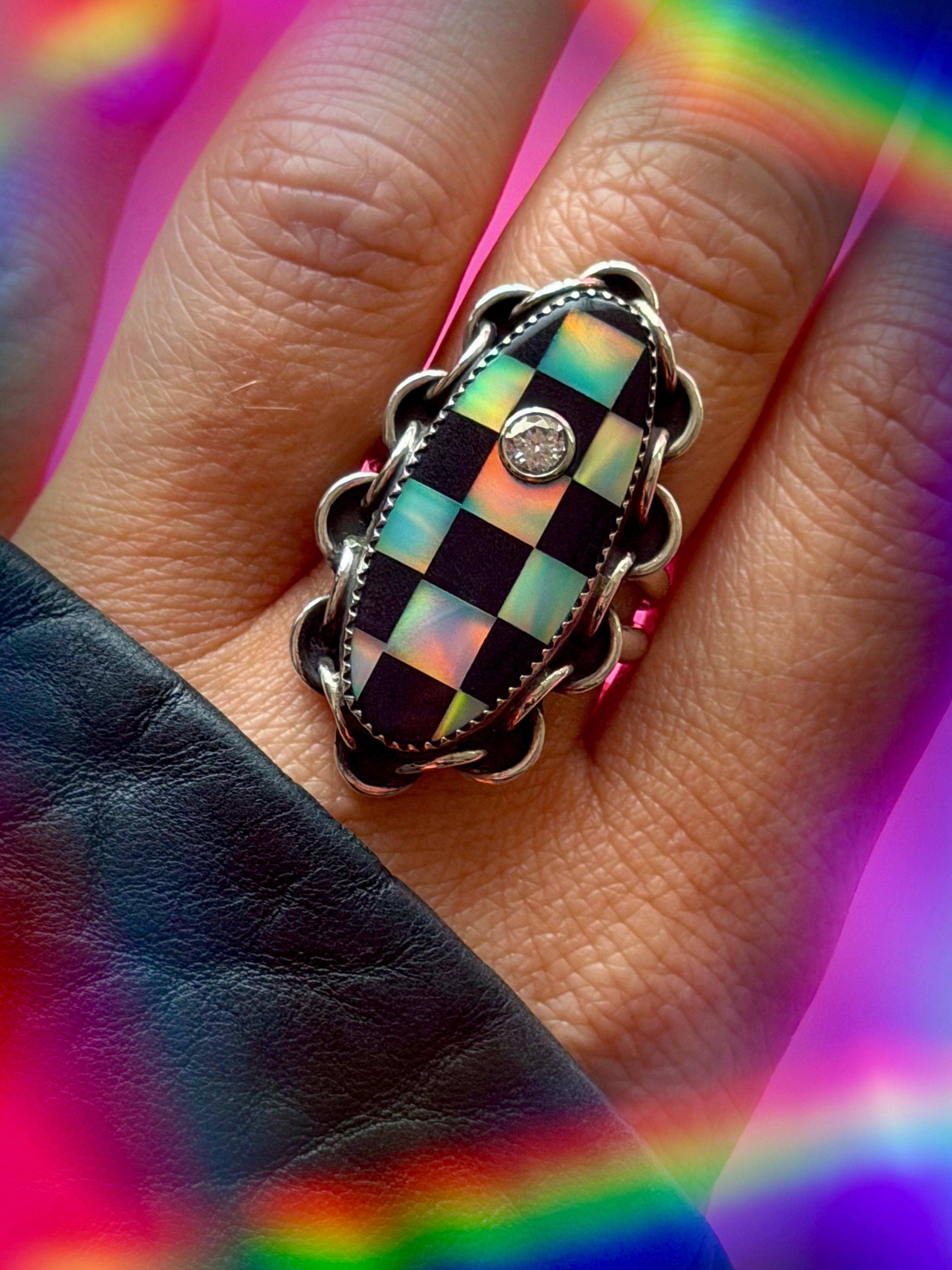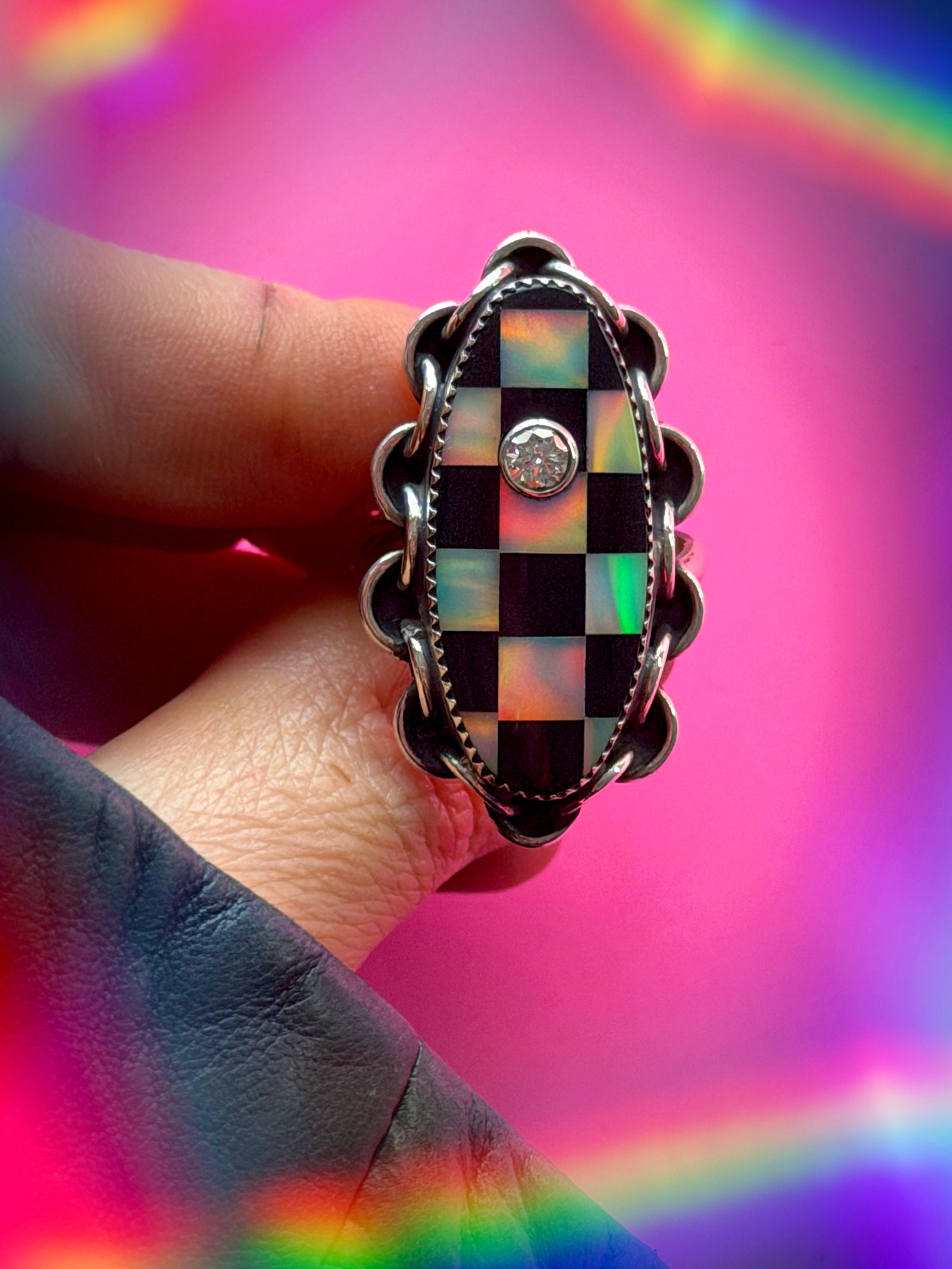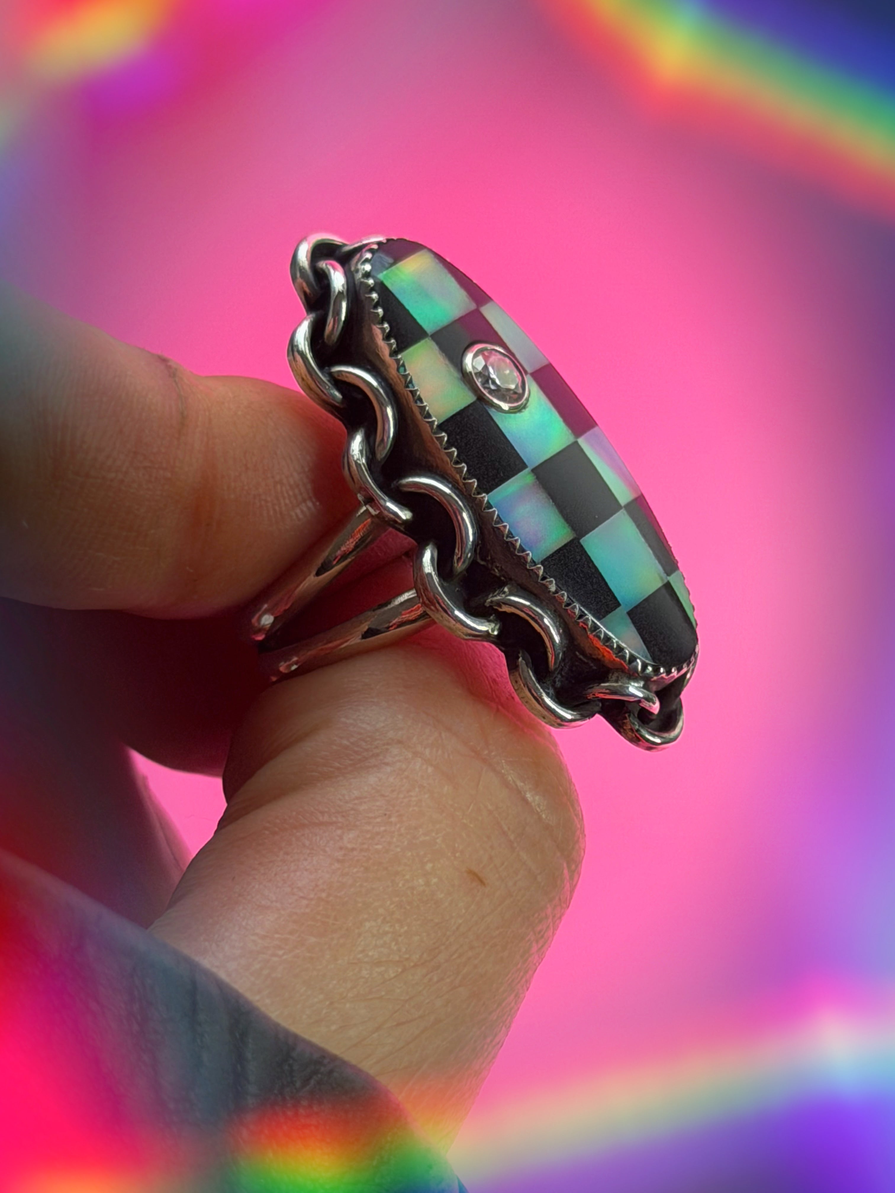 Blinged Out 💎 Checkmate 🏁⛓️ Love Link Ring - SIZE 8