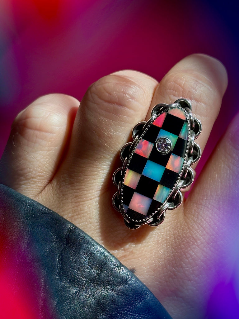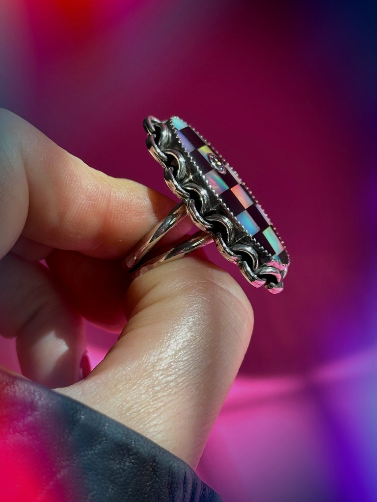 Blinged Out 💎 Checkmate 🏁⛓️ Love Link Ring - SIZE 9