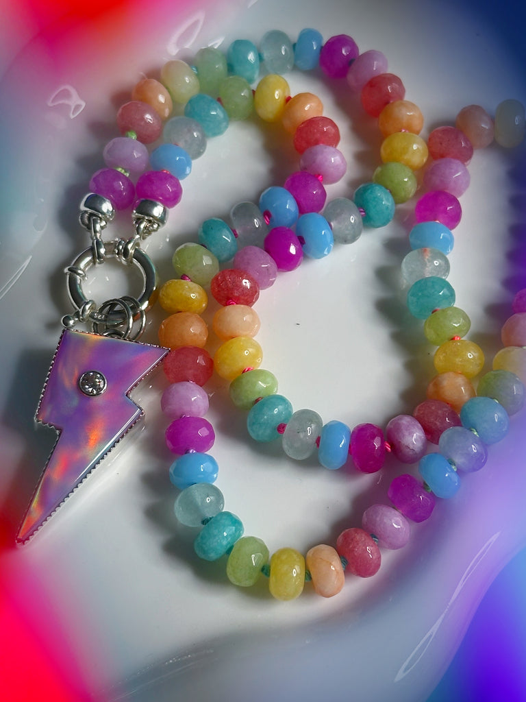 Rainbow Riot 2.0 🍭Blinged Out Bolt ⚡️Silk Knotted Bead Charm Necklace - CONVERTIBLE