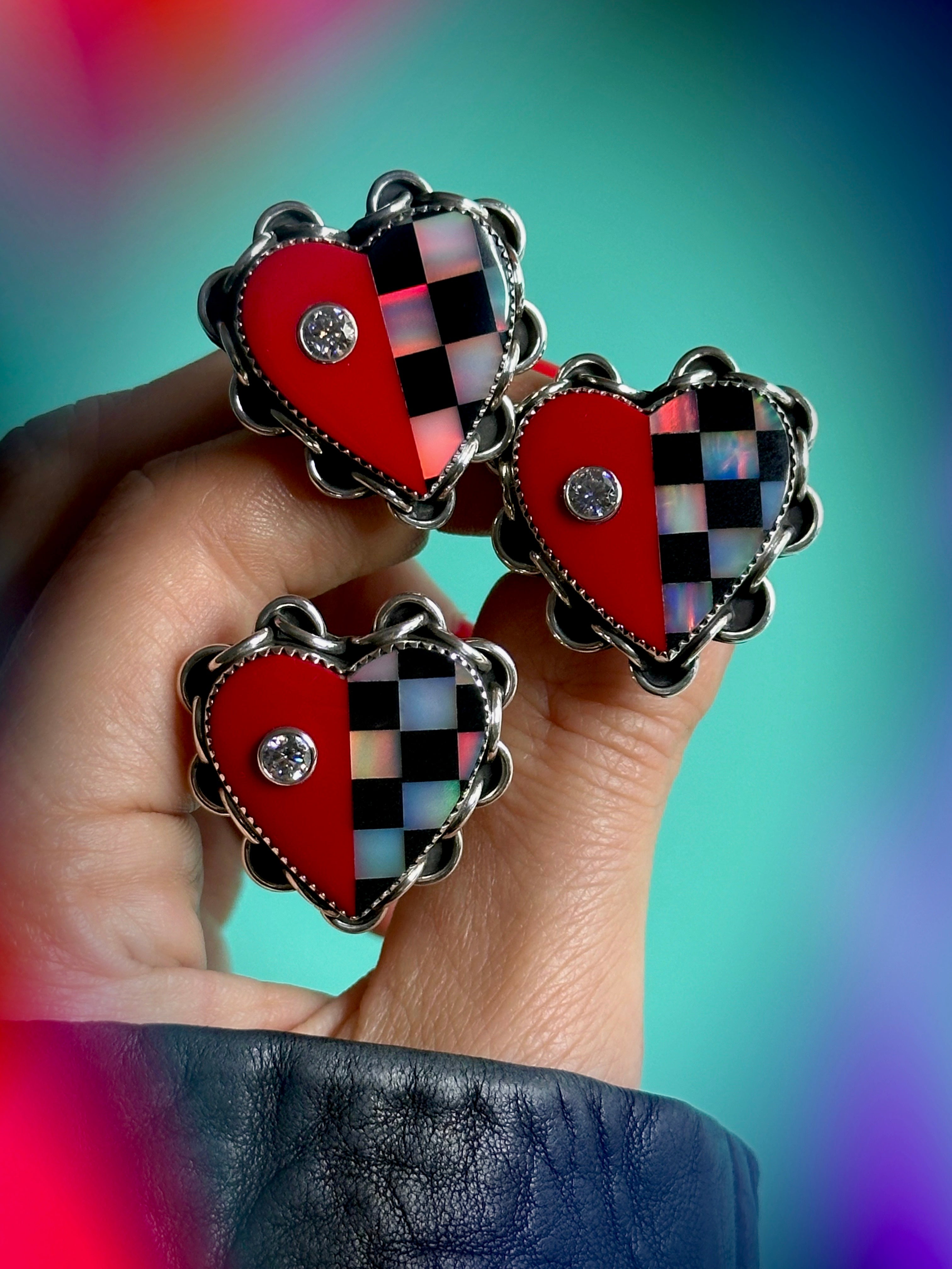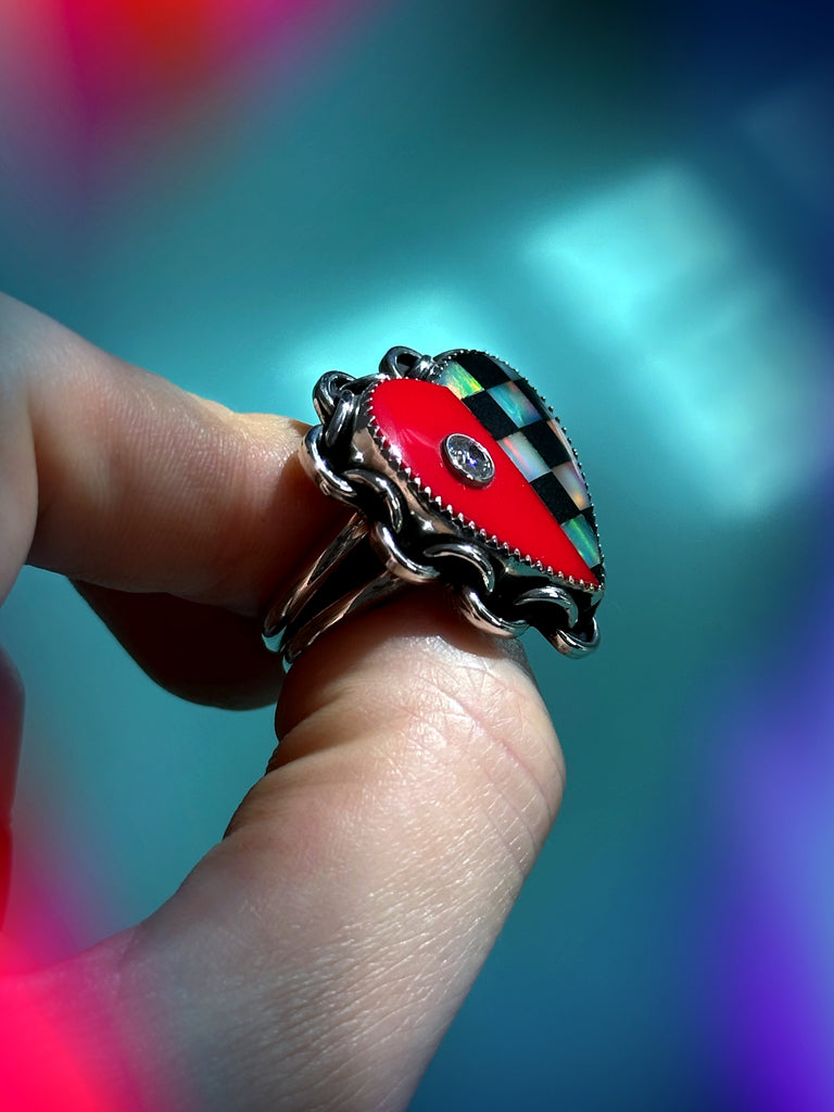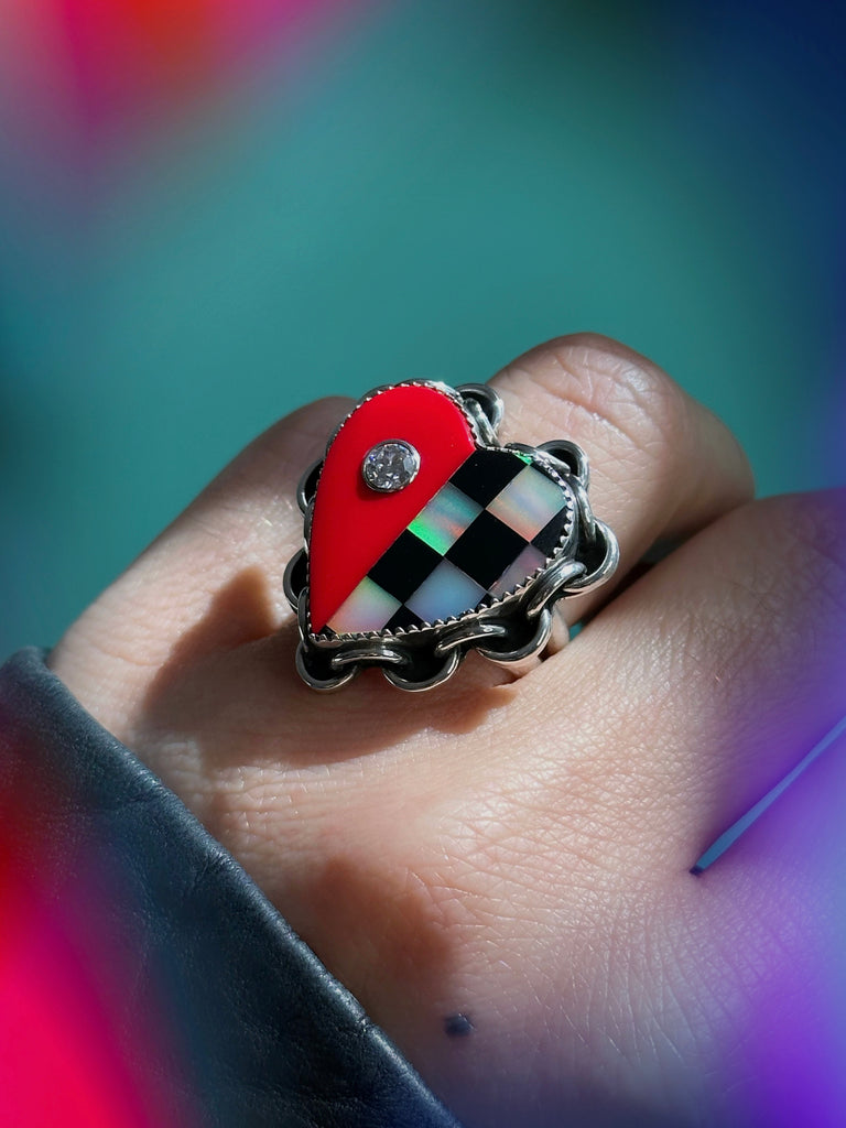 Two Way ❤️🏁 Blinged Out 💎Checkmate ⛓️ Love Link Ring - SIZE 7